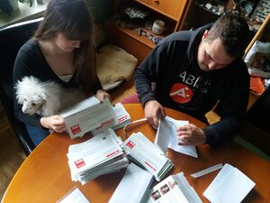 Zwei unserer jüngsten Kandidaten, Lena und Manuel, sind gerade fleißig und bereiten einen Brief an alle Jungwähler vor.
