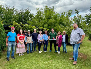 Von einem heranziehenden Gewitter, das sich durch eine bedrohliche Wolkenwand ankündigte, blieb die Gruppe an diesem Nachmittag erfreulicherweise verschont. Zum Abschluss lud der Obst- und Gartenbauverein in das Vereinsheim ein, wo die Gäste in den Genuss einer köstlichen Zucchinitarte von Johanna Rombach mit eigenem Gemüse kamen.