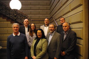 Von links: Rüdiger Hering, Bernd Muth, Lina Kraft, Caro Seyfried, Dirk Baumann, Joachim Winz, Marco Metzler und Roland Schwabenland.